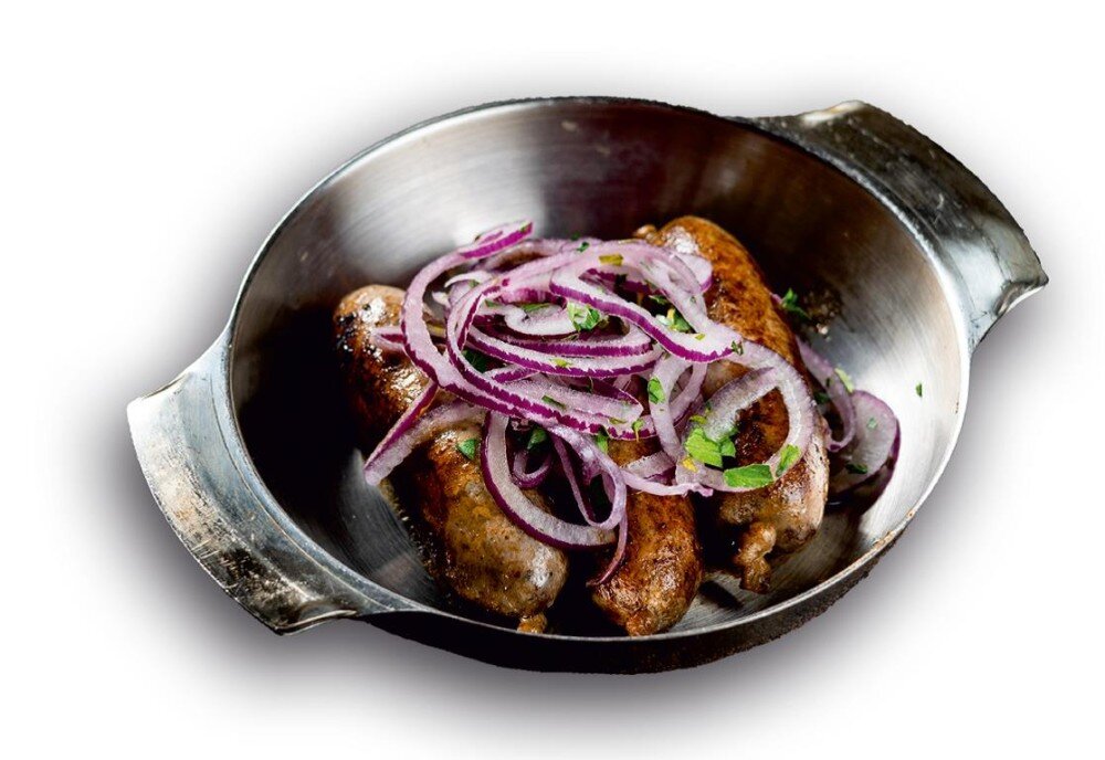 Колбаски собственного приготовления из мяса свинины и говядины с луком, чесноком, барбарисом и грузинскими специями